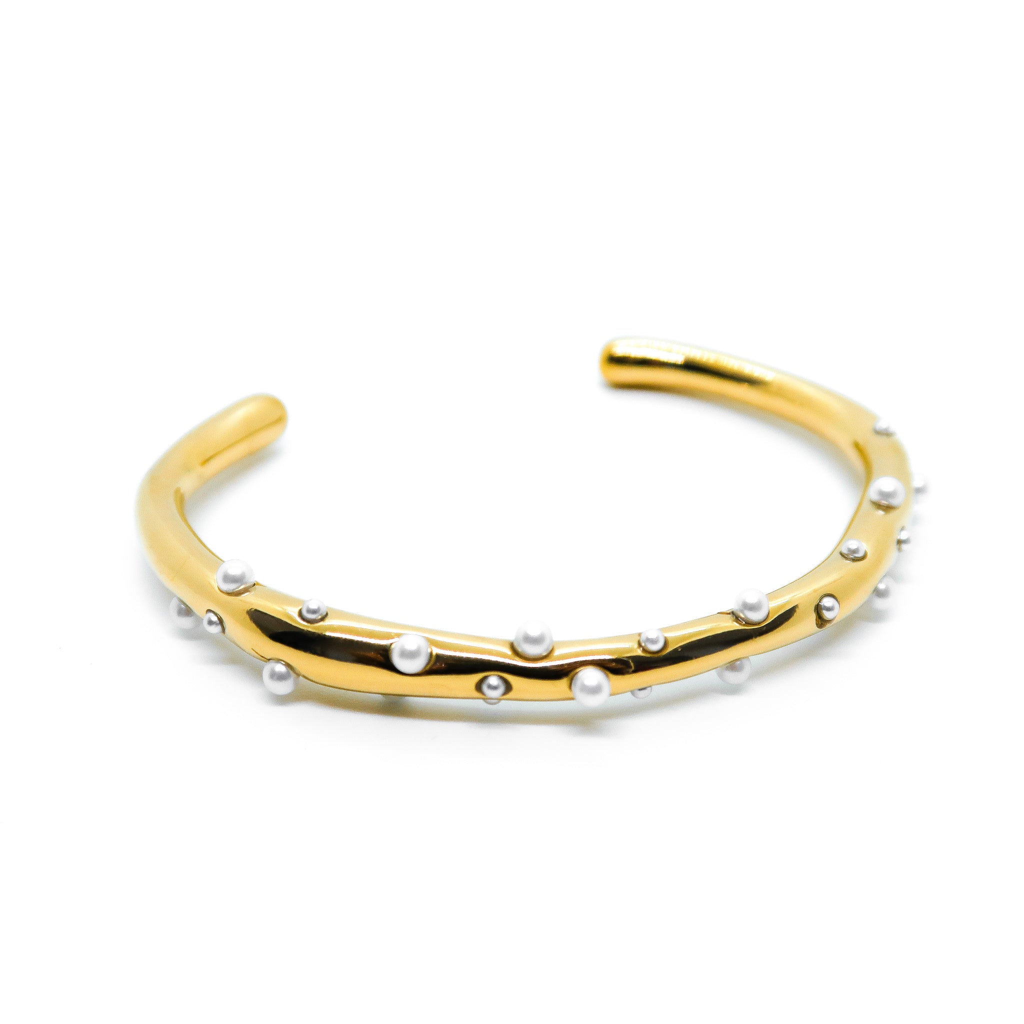 Plongez dans l'élégance intemporelle avec le Jonc TAHITI Or, un bijou d'exception en acier inoxydable plaqué or 18k. Ce bracelet sophistiqué se distingue par ses délicates pierres nacrées blanches qui captent la lumière à chaque mouvement. Alliance parfaite entre le raffinement summer et le charme vintage, ce jonc deviendra rapidement l'accessoire indispensable qui sublimera toutes vos tenues, du quotidien aux occasions spéciales.